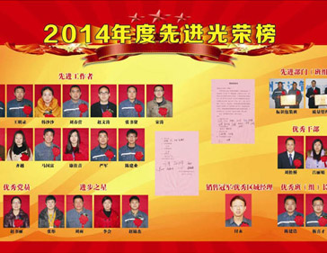2016/01/28 354 2014年全年工作中,二十三位同志和兩個優秀班組表現突出,踐行公司價值、實干、實效的工作理念,認真工作,愛崗敬業,始終保持旺盛的精神風貌和飽滿的工作激情,在各自工作崗位樹立了榜樣,被評為公司的先進代表。