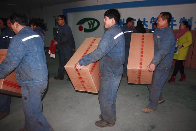 為感謝全體員工一年來的辛勤工作,祝福員工度過一個歡樂喜慶的新年,公司本著,一切以為員工謀福利的原則,為每位員工購置了禮品(若羌大棗、稻花香金玉滿堂)。讓員工把公司溫暖帶回家。