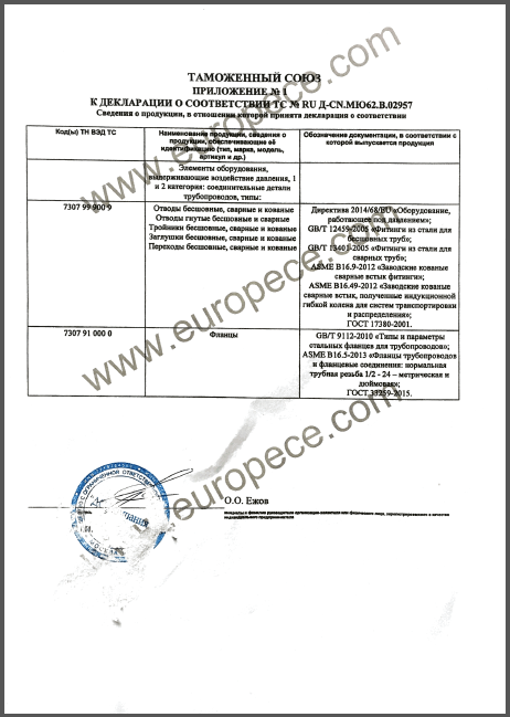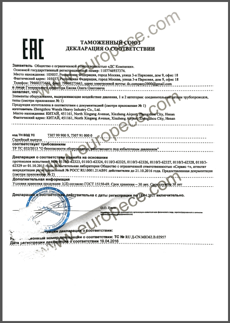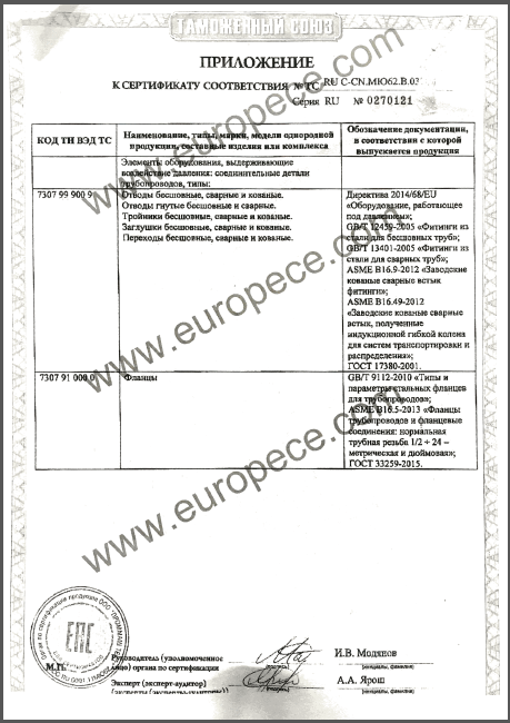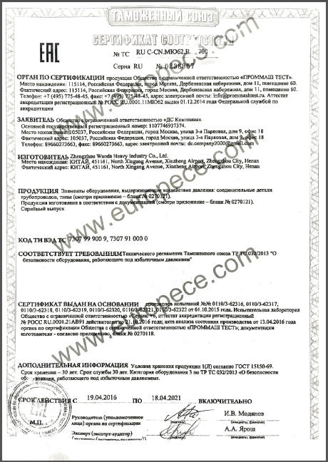 CU-TR認(rèn)證產(chǎn)品覆蓋萬達重工生產(chǎn)的彎管、法蘭等各類型產(chǎn)品,認(rèn)證證書的取得是俄白哈對萬達重工產(chǎn)品資料、安全標(biāo)識、產(chǎn)品性能的肯定,同時驗證了萬達重工的產(chǎn)品質(zhì)量又邁上了一個更高的臺階。近年來,我公司積極開拓海外市場,把擴大國際市場作為重要的發(fā)展戰(zhàn)略,此次CU-TR認(rèn)證證書的取得,為我司進一步開拓歐洲市場提供了強有力的保證。
