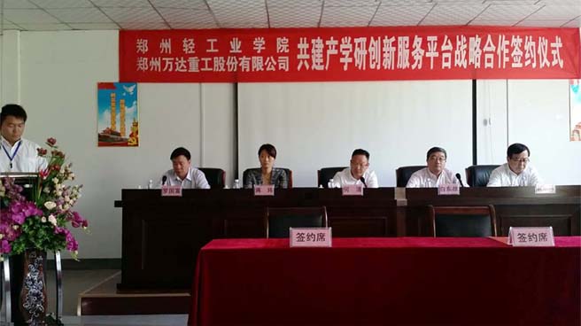 2016年9月21日,由鄭州萬(wàn)達(dá)重工股份有限公司與鄭州輕工業(yè)學(xué)院共同建立的產(chǎn)學(xué)研創(chuàng)新服務(wù)平臺(tái)戰(zhàn)略合作簽約揭牌儀式在鄭州萬(wàn)達(dá)重工股份有限公司順利舉行。