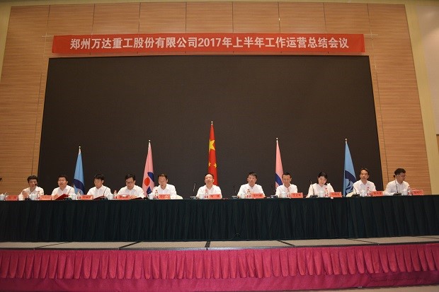 7月12日上午鄭州萬達重工股份有限公司2017年上半年工作運營總結會議在航空港區中部國際電子商務產業園隆重圓滿召開,參加會議并在主席臺就座的的領導分別為股份公司董事長、書記何清,股份公司董事、總經理張付峰,股份公司監事會主席、工會主席于江山,股份公司董事、副總經理王立軍,股份公司監事、總工程師袁希海,股份公司董秘、副總經理馬曉延、股份公司董事、財務總監劉保國,鄭州友聯智能裝備有限公司總經理孫夫彥,鄭州萬達科技發展有限公司總經理劉國曉、鄭州萬達邁科國際發展有限公司總經理張明行、鄭州萬達電力工程有限公司總經理劉偉。
