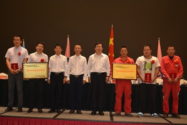 按照會議議程,大會對鄭州萬達科技發展有限公司、生產管理部金加工模塊頒發了“第六屆質量月活動先進集體”榮譽獎牌,向王明錄、孫鵬飛頒發了“第六屆質量月活動優秀個人”榮譽證書并對丁西彬頒發了“中石油年度投標工作優秀個人”榮譽證書;并由丁西彬代表獲獎人員致獲獎感言,股份公司領導與先進集體、優秀個人進行了合影留念。
