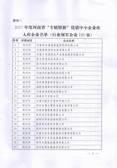 按照《河南省工業(yè)和信息化委員會辦公室關(guān)于建立河南省優(yōu)質(zhì)中小企業(yè)庫的通知》(豫工信辦企業(yè)【2017】20號)的要求,經(jīng)過自愿申報、逐級推薦、專家評審、網(wǎng)上公示等程序,鄭州萬達(dá)重工股份有限公司成果入選河南省“專精特新”優(yōu)質(zhì)中小企業(yè)庫,被認(rèn)定為行業(yè)領(lǐng)軍企業(yè)。