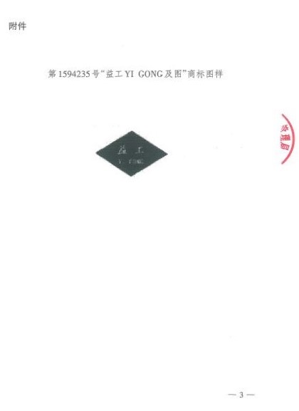根據國家工商行政管理總局商標局下發的商標馳字【2017】108號《工商總局商標局關于認定“益工 YI GONG及圖”商標為馳名商標的批復》文件,公司使用在商標注冊用商品和服務國際分類第6類金屬管道配件商品上的“第1594235號益工YI GONG及圖”商品被認定為中國馳名商標”,這不僅是公司商標保護的重大成果,也實現了鄭州航空港經濟綜合實驗區馳名商標零的突破。