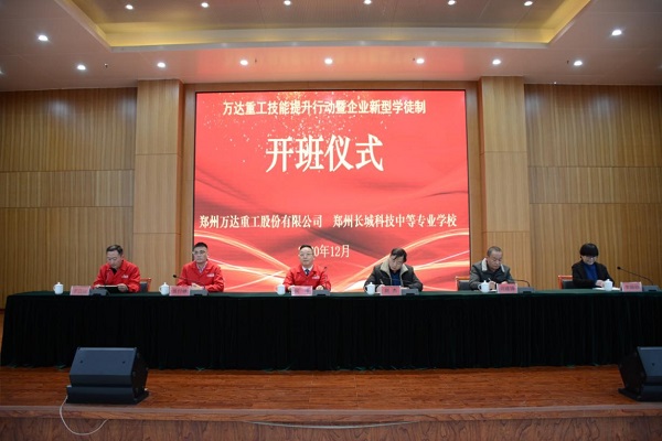人才是企業蓬勃發展的關鍵,為加快企業高技能人才建設、創新技術人才培養模式,進一步提升全體員工綜合技能水平,按照河南省人社廳、財政廳關于全面推行企業新型學徒制的文件精神,鄭州萬達重工股份有公司在航空港區人社局的大力支持下,聯合鄭州長城科技中等專業學校,于2020年12月25日成功舉辦企業新型學徒制開班儀式。
