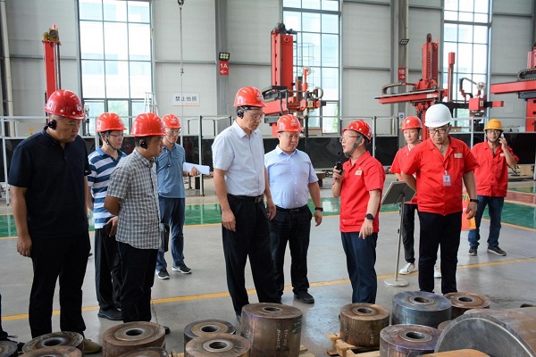 魏學彬副主任一行先后深入堆焊智能制造車間、彎制車間、機加工、物流倉儲等生產車間進行了參觀,實地查看了公司先進的生產設備、繁忙而有序的生產環境,股份公司董事長、書記何清就公司發展規劃、科技創新、市場布局、生產設備、技術及生產能力情況向調研組一行進行了詳細匯報,調研組一行對萬達重工現代化的管理理念,高遠的發展目標,一流的生產能力表示肯定,勉勵企業進一步提升創新能力,努力把企業做優做強做大。