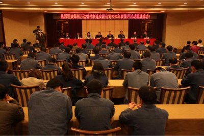 2016/03/15 575 歌聲嘹亮、旗幟飄揚、群情激昂,2013年4月3日上午九點,鄭州萬達管件制造有限公司隆重召開了2013年公司質量月活動宣誓大會。鄭州市質量技術監(jiān)督局尚副局長、肖處長、綜合保稅區(qū)(航空港區(qū))質量技術監(jiān)督局王局長應邀作為嘉賓出席了此次萬達質量月啟動大會。 上午的啟動大會,員工統(tǒng)一了思想,統(tǒng)一了行動,對公司在市場競爭中起到了有...