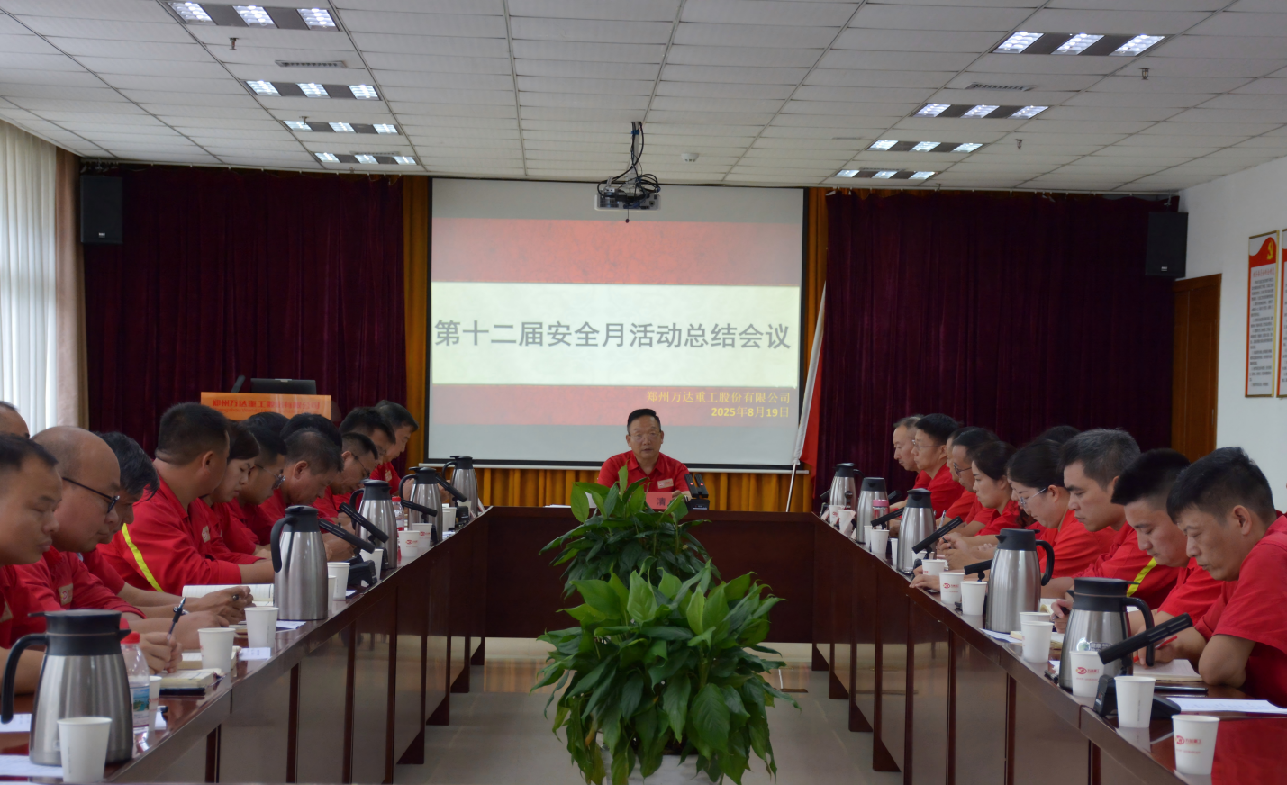 2025/08/20   1047 2025年8月19日下午,鄭州萬達重工股份有限公司在行政樓二樓會議室召開了股份公司第十二屆安全月活動總結會議。股份公司黨委書記、董事長、活動領導小組組長何清,安