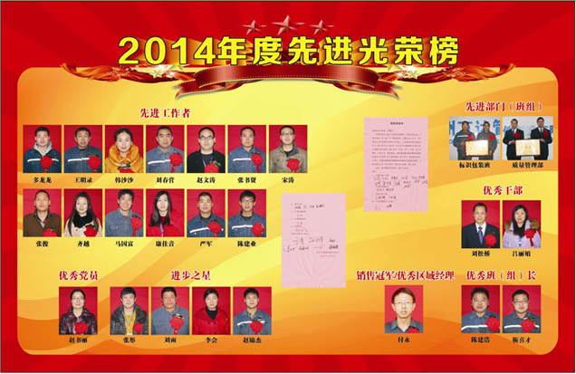 2014年全年工作中,二十三位同志和兩個優秀班組表現突出,踐行公司“價值、實干、實效”的工作理念,認真工作,愛崗敬業,始終保持旺盛的精神風貌和飽滿的工作激情,在各自工作崗位樹立了榜樣,被評為公司的先進代表。